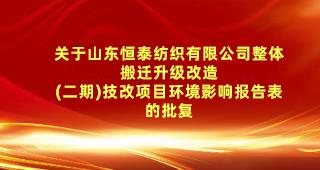 關于山東恒泰紡織有限公司整體搬遷升級改造 (二期)技改項目環(huán)境影響報告表的批復