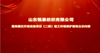 山東恒泰紡織有限公司整體搬遷升級改造項目(二期)竣工環(huán)境保護驗收公示內(nèi)容